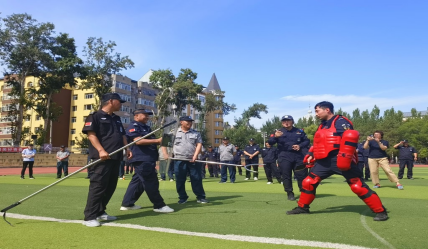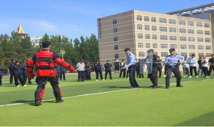 8月21日,市教育体育局联合黑河市公安局开展了“最小应急单元”演练观摩活动,特警教官通过互动演示,对重点部位巡查、安全隐患排查、视频监控巡查、一键式报警应用、突发事件应对及最小应急单元等安防技能进行了讲解,针对安保防卫器械的握姿、发力点、击打部位以及在实战中的运用技巧进行了演示和指导,城区学校年轻教职工、保安员160余人现场进行了“二对一”“三对一”战术技能实操演练,进一步强化了钢叉、防暴盾牌及抓捕器等安保防卫器械的使用方法及徒手控制技巧,切实增强了预防处置突发事件能力。
