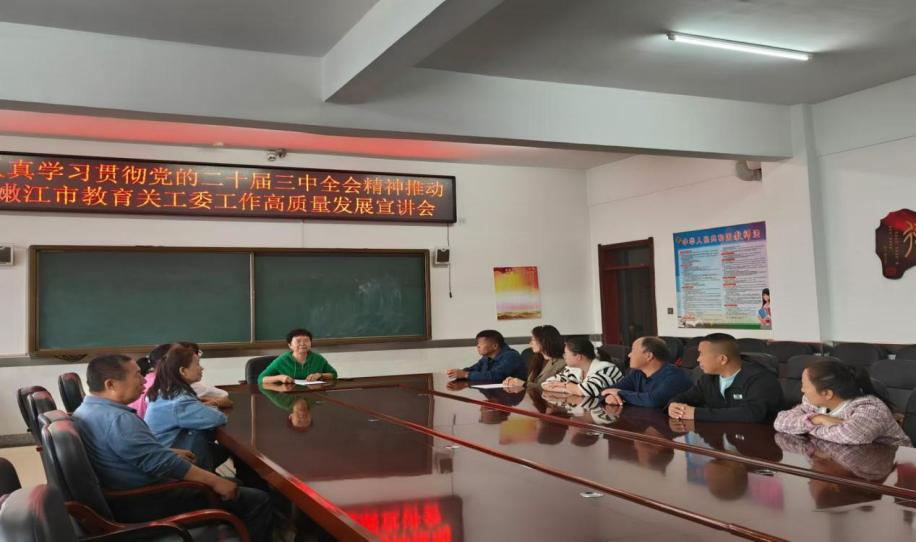 嫩江市教育关工委成员刘春华深入铁东学校开展宣讲三中全会精神。宣讲中,刘春华为教师们解读了党的二十届三中全会精神的内涵、核心要义。并紧紧围绕中小学生全面发展、健康成长,跟上新形势、解决新问题、寻求新突破、推动新发展为突破。要求关心下一代工作人员关注时代热点与新兴问题,如青少年网络安全、少年儿童心理健康、和谐校园建设、家校社协同育人、科技创新和智能应用等,将这些元素融入到关心下一代的工作中,为青少年提供相应的教育和指导。推动三中全会全会精神在校园落地生根、开花结果。