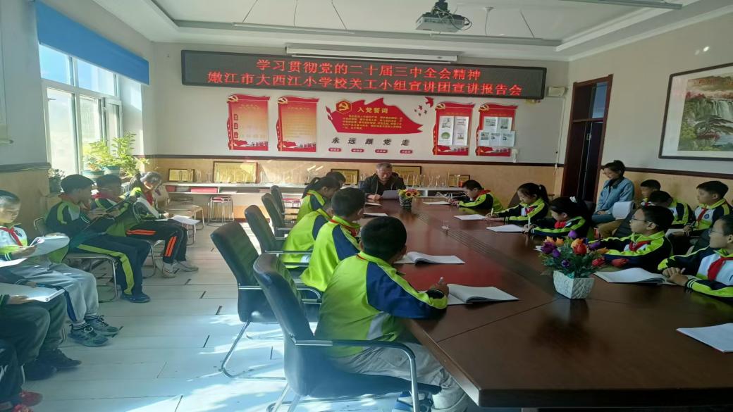 尖山学校关工小组在组织开展学习贯彻党的二十届三中全会精神主题宣讲活动中,“五老”教师向同学们介绍了党的二十届三中全会是在以中国式现代化全面推进强国建设、民族复兴伟业的关键时期召开的一次十分重要的会议。全会强调,教育、科技、人才是中国式现代化的基础性、战略性支撑。这意味着作为学生,肩负着重要的使命。作为新时代的少年儿童,努力向上,积极进取,为实现中华民族伟大复兴奋发读书!