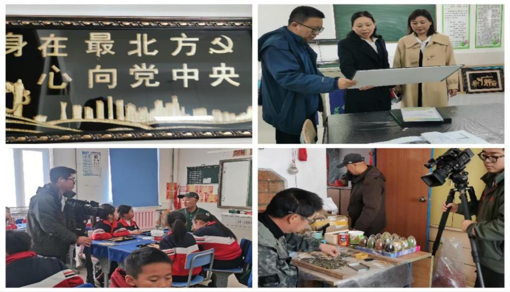随后,记者还拍摄了山河小学用不同色彩的小瓶盖制作的“天安门”“长城图”“民族一家亲”“大荒情”等节能型校园文化建设,以及师生为迎接黑龙江日报、省电视台来访,特意精心制作的“身在最北方,心向党中央”的麦秸画和麦秸画活动课。