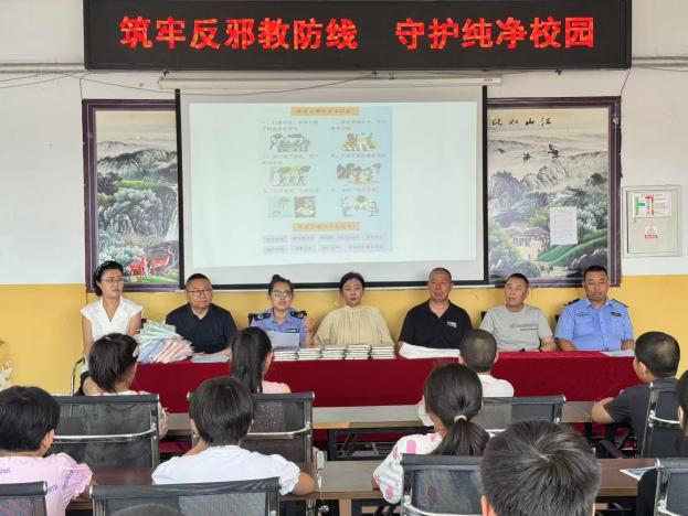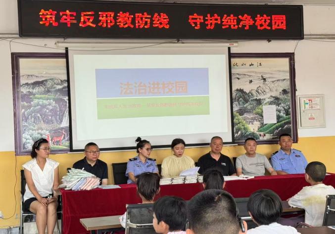 活动伊始,新发镇关心下一代主任卢楠进行宣布此次活动的相关内容和目的。新发镇司法所司法助理赵雪彬结合真实案例,深入浅出地向学生们普及反对邪教知识,揭露邪教蛊惑人心、破坏家庭、危害社会的本质,引导学生树立科学观念,自觉抵制邪教侵害。同时,围绕假期安全、食品安全、“防溺水”教育等重点内容,赵助理通过情景模拟、互动问答等形式,详细讲解各类安全风险防范要点,叮嘱学生们牢记安全准则,时刻保护自身安全。