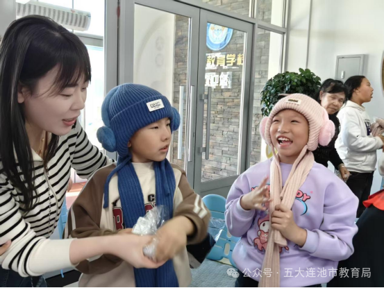 活动中,社区工作人员、学校老师亲手为孩子戴上新帽子、围上暖围巾,用亲切的交流鼓励孩子积极融入集体;家长们则敞开心扉,分享育儿过程中的困惑与收获,三方围绕“如何助力孩子更好成长”展开深入交流,让教育共识在沟通中凝聚。