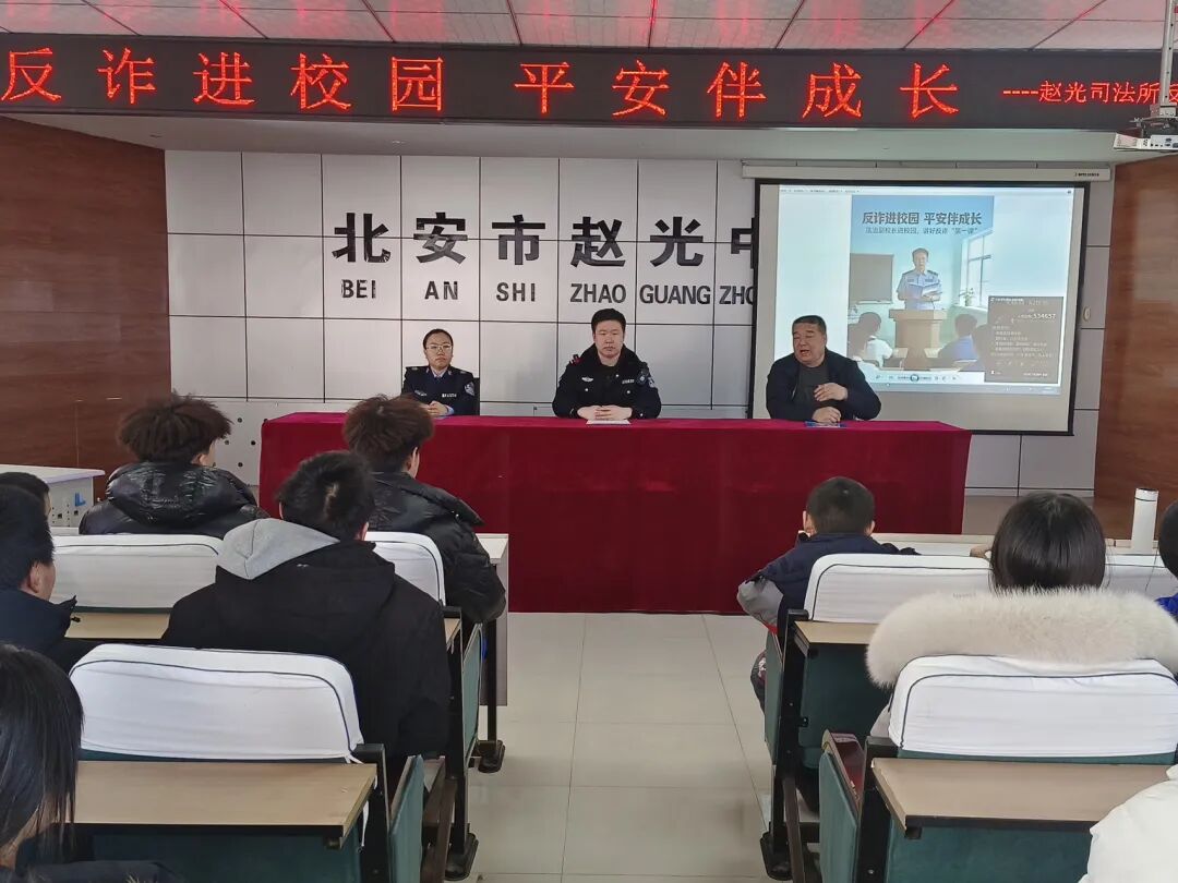 3月25日,为切实筑牢校园安全防护网,提升青少年反诈防骗意识,北安市司法所联合赵光派出所关爱工作站走进赵光中心校,以“反诈进校园 平安伴成长” 为主题,为同学们带来开学反诈第一课,送上实用的安全防护知识。活动现场,“面对面讲解 + 案例警示” 的形式,结合青少年热衷网游、社交频繁的特点,精准拆解学生群体易中招的诈骗陷阱,重点围绕免费游戏皮肤领取、游戏账号买卖、明星粉丝群福利等常见骗局展开讲解。通过未成年人被骗真实案例,揭露诈骗分子利用私信诱导、虚假承诺等手段盗取账号、骗取钱财的套路,还叮嘱同学们牢记 “三不一多” 原则:不透露密码验证码、不私自转账汇款、不打开屏幕共享,发现可疑情况及时告知老师和家长。