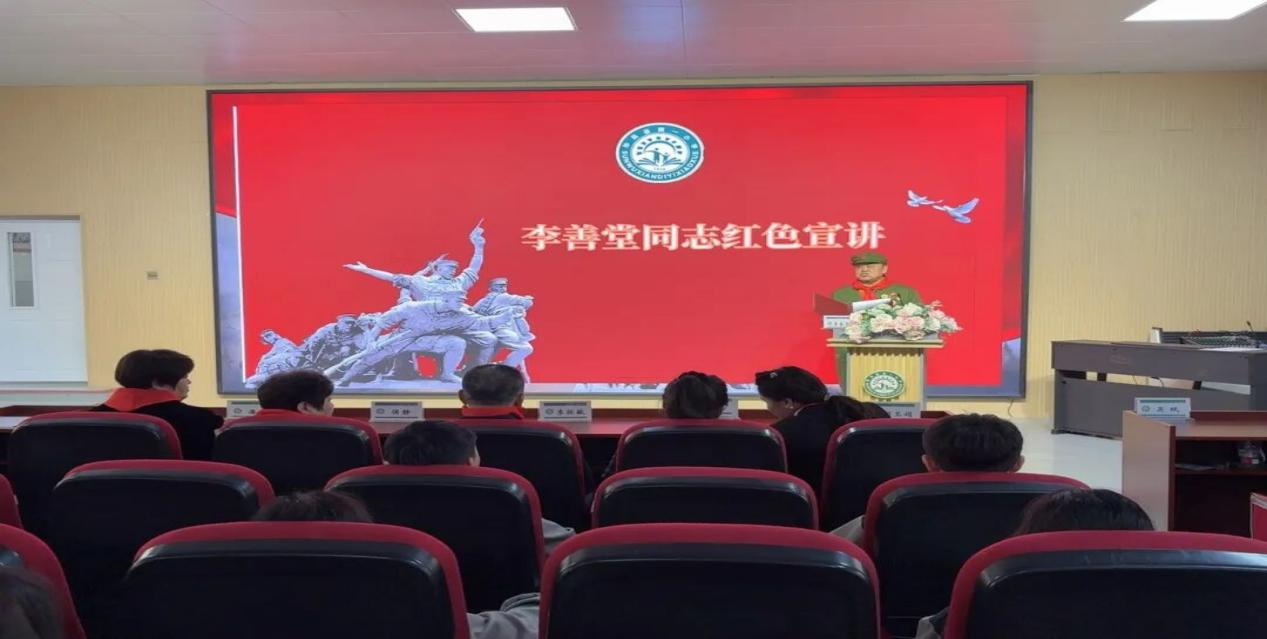 活动伊始,少先队员代表为莅临现场的各位领导与嘉宾敬献红领巾,鲜艳的红领巾映衬着真挚的敬意,也让红色传承的纽带紧紧相连。各级领导的到来,是对学校红色教育工作的高度重视与鼎力支持;李善堂老兵的登场,更让现场掌声雷动、暖意融融。在庄重热烈的氛围中,这场浸润初心、传递力量的红色宣讲活动正式拉开帷幕