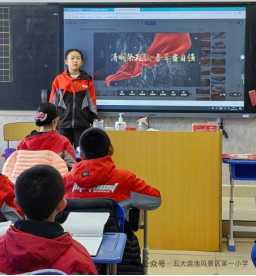 此外,学校各班级同步召开“清明祭英烈”主题班队会。各班通过观看红色影片《红孩子》、诵读英烈诗篇、讲述英雄故事、交流心得体会等多种形式,带领同学们重温峥嵘岁月,感悟革命精神。同学们在学习中深受触动,纷纷表示要以革命先烈为榜样,珍惜来之不易的幸福生活,树立远大理想,勤奋学习、砥砺品格,努力成长为德智体美劳全面发展的新时代好少年。