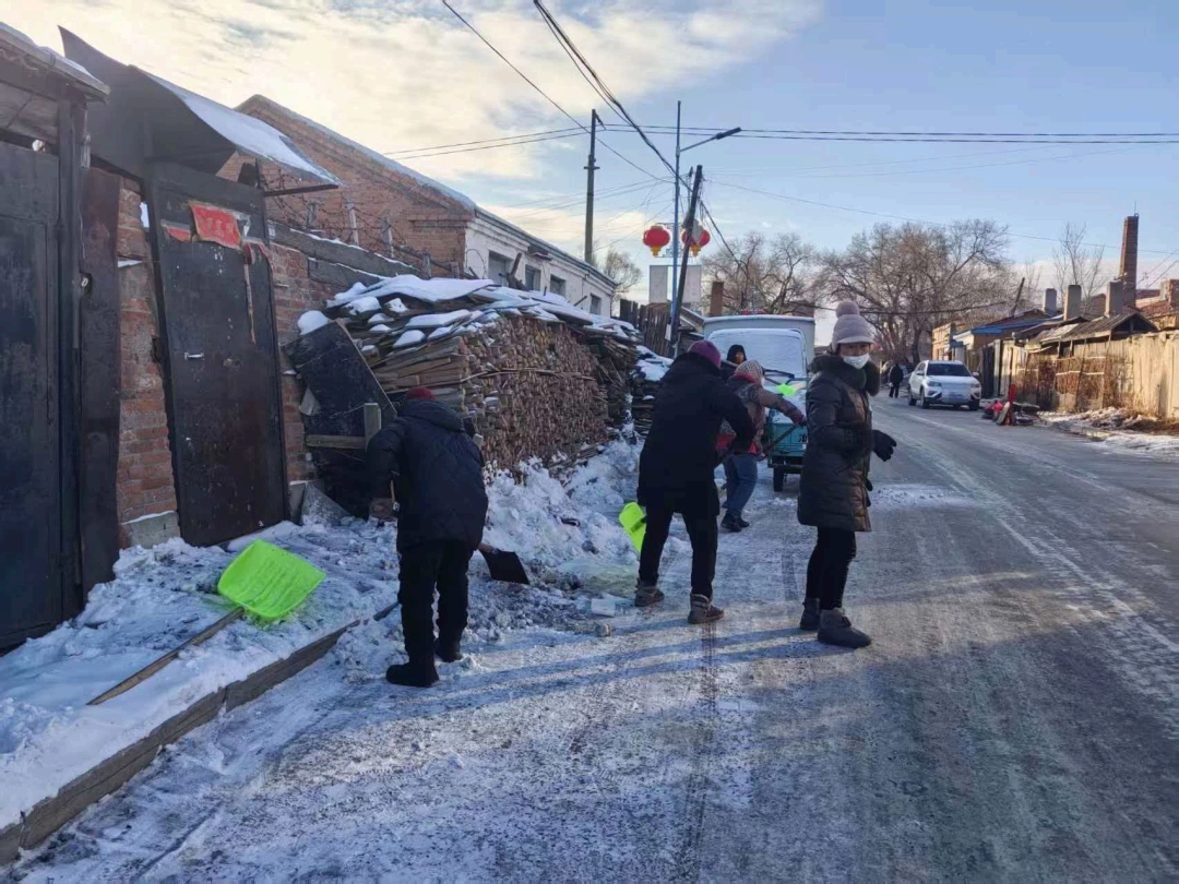 ⼤家拿起铁锹、扫帚等⼯具,全⼒投⼊到清雪⼯作中。尽管天⽓寒冷,但⼤家⼲劲⼗⾜。在街道关⼯委和志愿者的带动下,不少居⺠也⾃发加⼊到清雪队伍中,形成了“党员带头,全⺠参与”的良好氛围。⼤家还来到辖区独居⽼⼈家中,重点清理家⻔⼝、院落通道等关键位置,确保⽼⼈出⾏⽆阻碍。