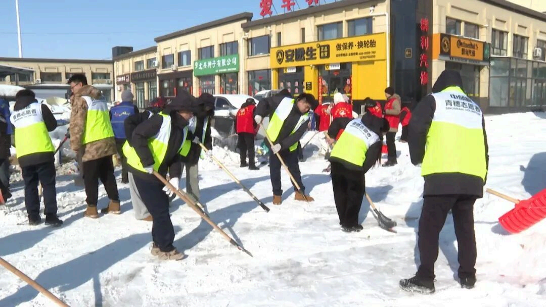 北岗街道关⼯委联合北岗司法所、中央储备粮北安直属库有限公司,共同开展“弘扬雷锋精神共建洁净家园”学雷锋清雪志愿活动。