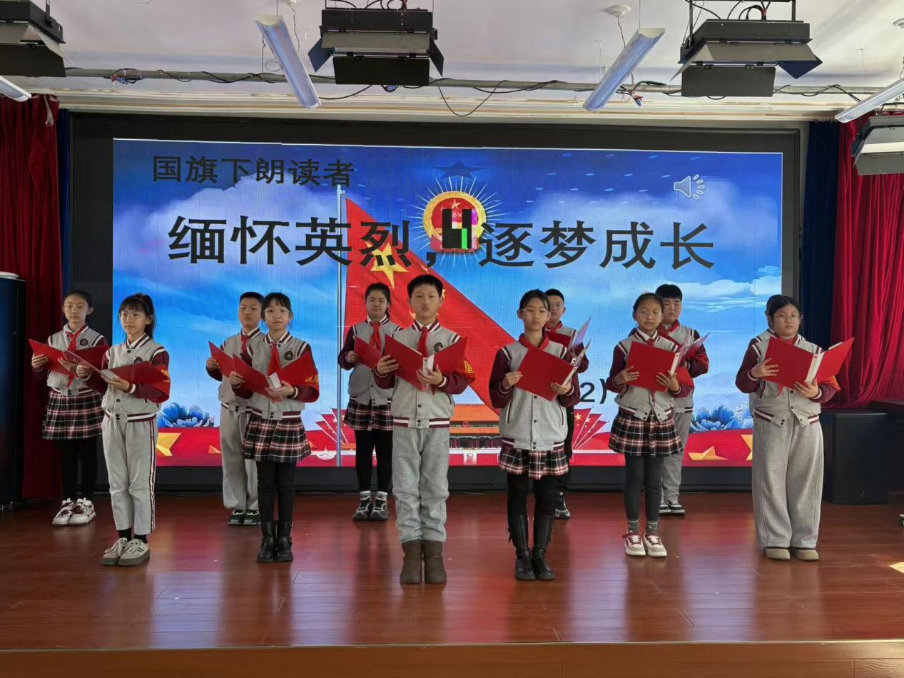 实验小学少先队大队部依托校园广播,常态化播送英烈事迹,将红色教育融入校园日常。同时开展国旗下朗读者主题活动,队员们深情诵读红色故事,传承英烈精神,厚植爱国情怀,让红色基因在校园落地生根。
